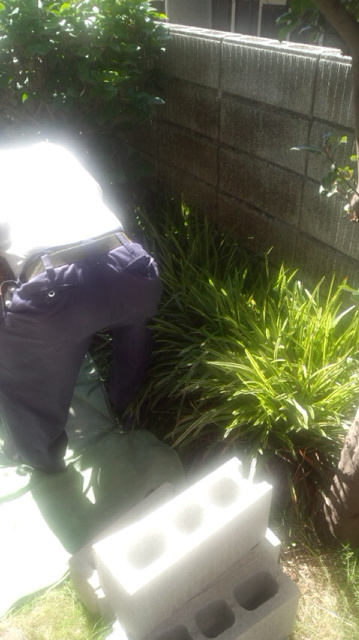 中の写真は、控えとなるブロックの基礎を作るために土を掘っています。(もともとコンクリートのところは、鉄筋を差し込みました)